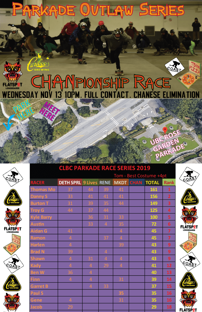 Other big moves from Austin, Kyle, Harlen, Ramon, Brad & Aidan filling out the top 10!! keep kickin ass folks, details about CHAN CENTER coming soon.