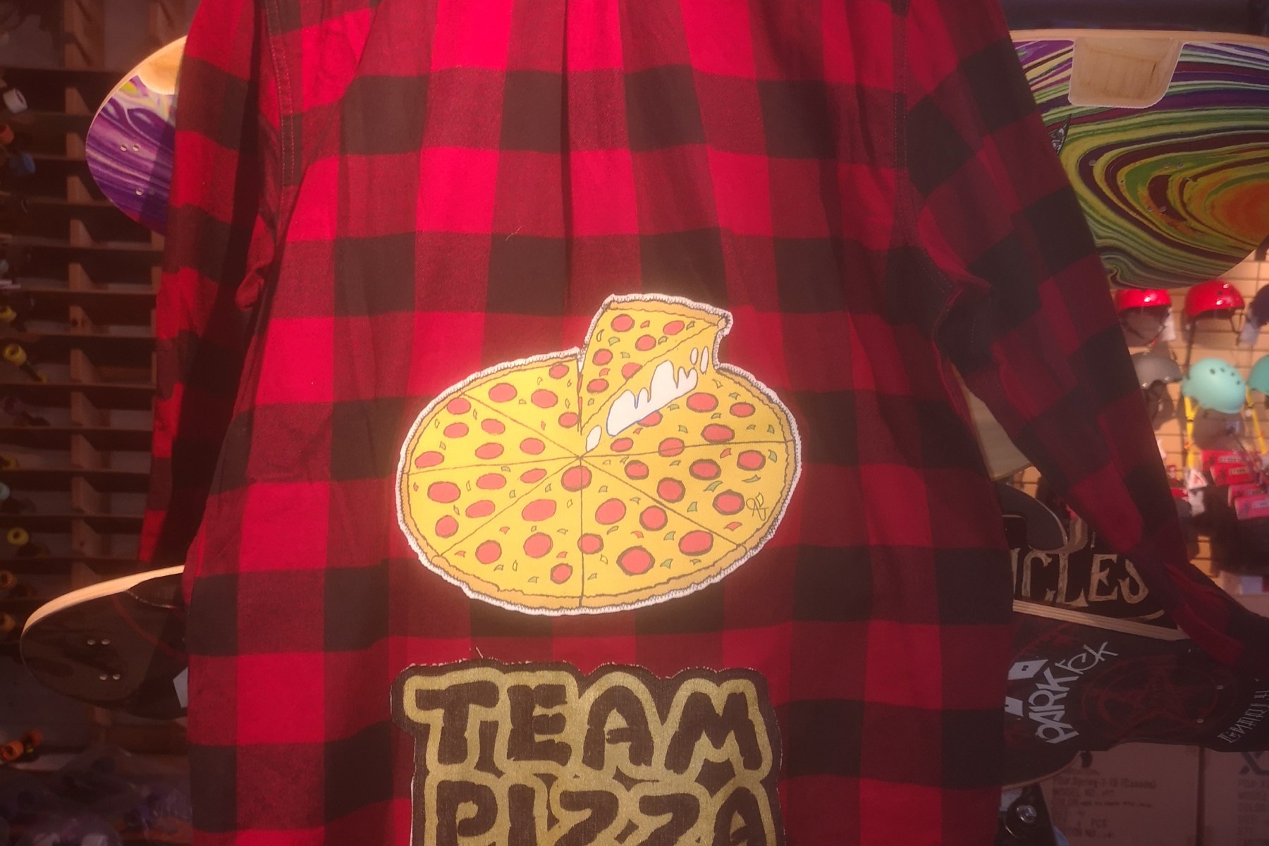 Team pizza apparel. One of a kind items, made with passion by Shredder himself.